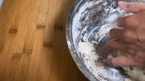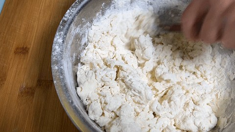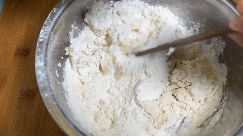 3. 然后把面絮拌匀,用手揉捏