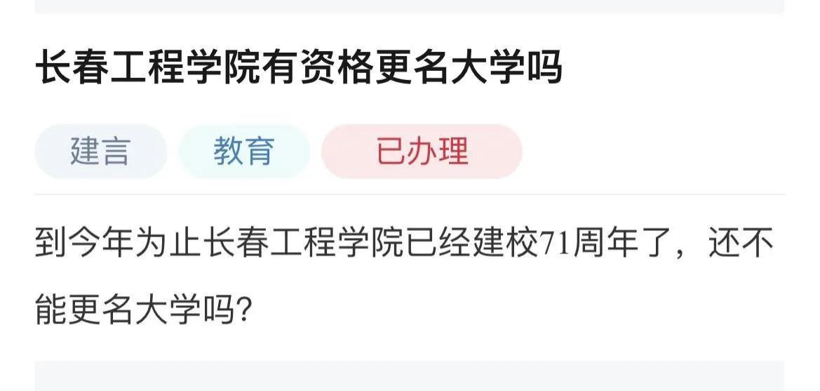 该网友表示,长春工程学院已经建校71年,有没有更名“大学”的资格。