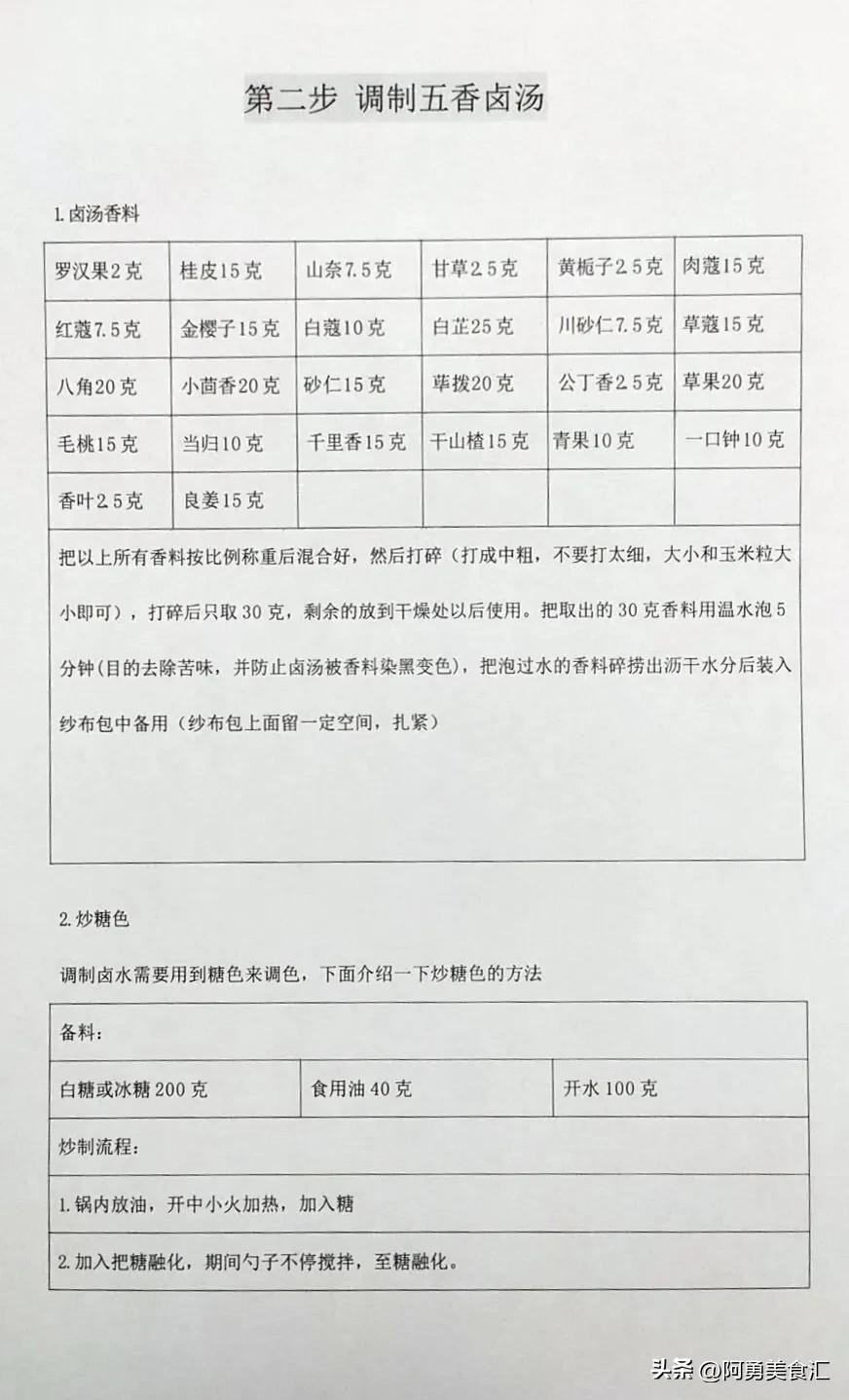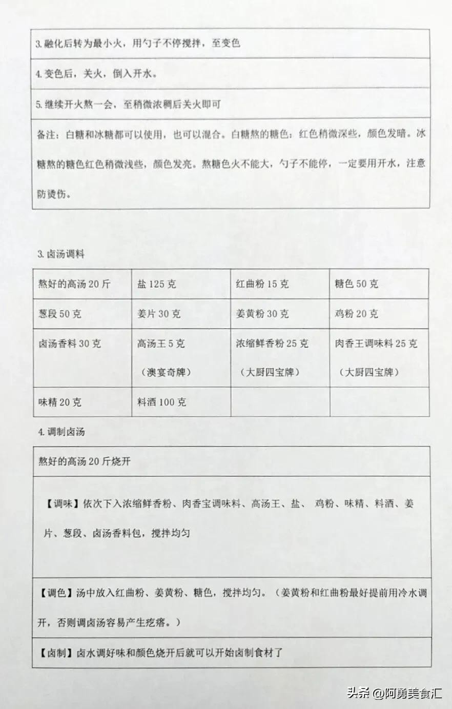 第二步、卤水香料配方和制作,炒糖色流程。配方是由26种香料搭配而成,比例精确到克。糖色是卤肉上色最健康最好的一种方法,做出来的卤肉色泽鲜艳明亮,非常有食欲。