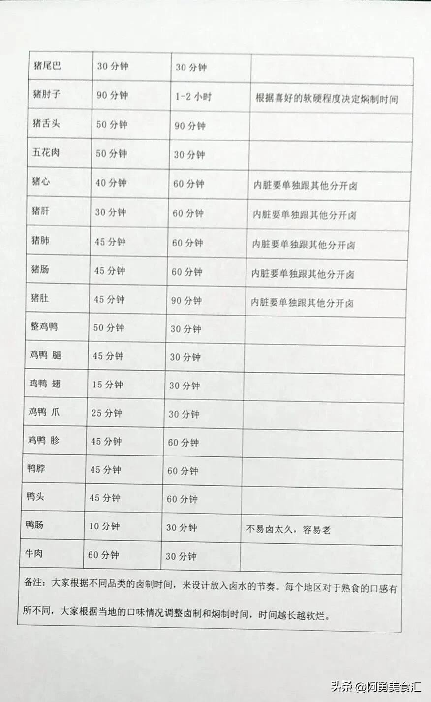 卤制的具体做法和卤制的时间,包含所有肉类食材,非常全面,一定要好好学习。