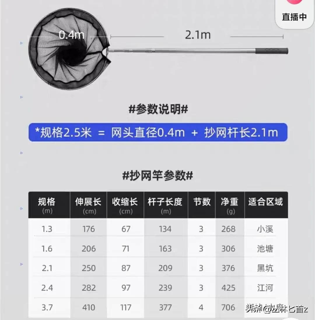 光威抄网主体采用的是铝合金材质,但是重量却更重,说明用料相当扎实。网头深度40CM,更深一些,不易跑鱼。不过需注意最长尺寸只有2.5米规格。价格比光威贵了不少。总结来说光威这款综合性能更好,如果对价格不太敏感,可以选择光威这款抄网。