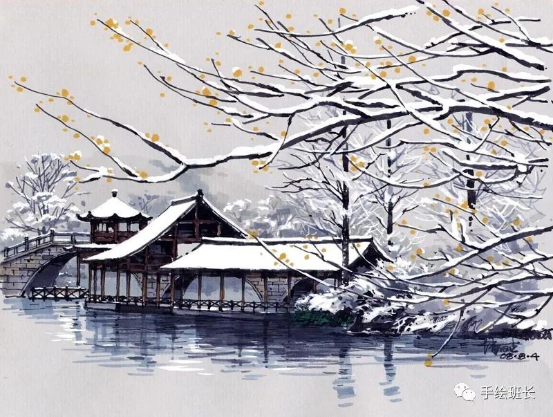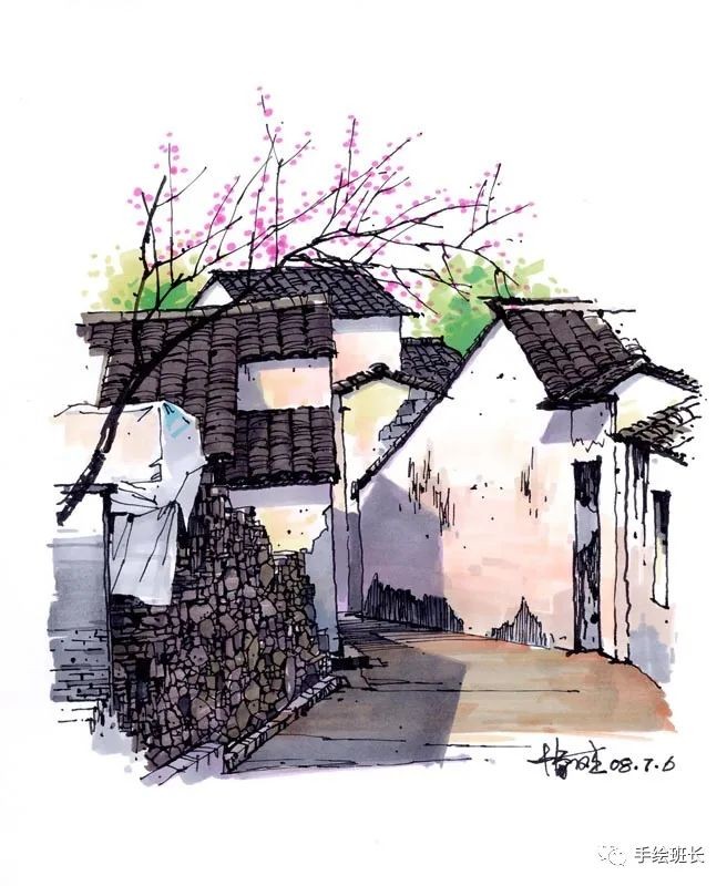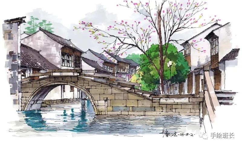 下面我们就来欣赏一组国内大师潘俊杰的风景写生手绘