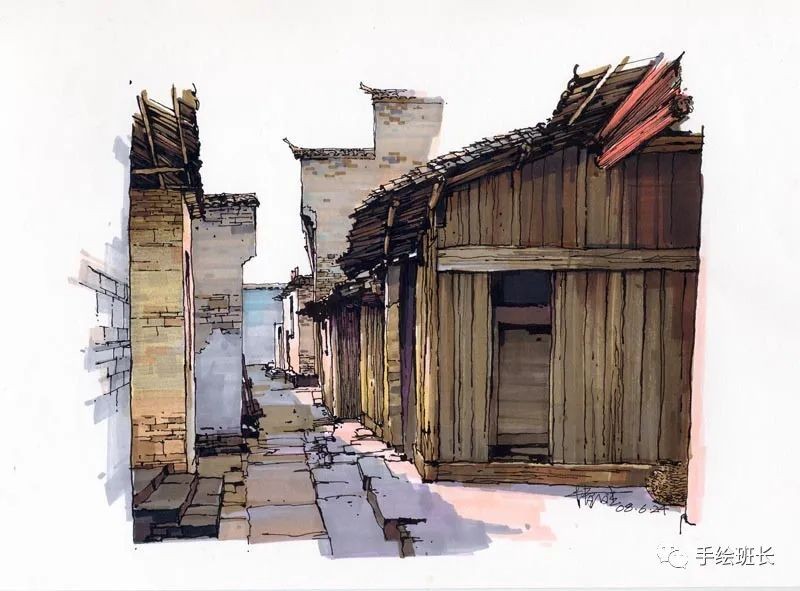 今天给大家分享一组精彩的马克笔风景写生