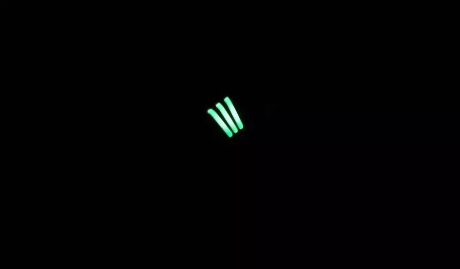 打开底部的电源按键,尾部Logo RGB背光灯与LED指示灯瞬间闪烁,此时是绿色。