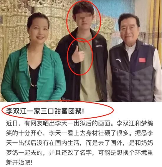 已经坐完10年牢今年刚出狱的也已经27岁的儿子李天一的合照。