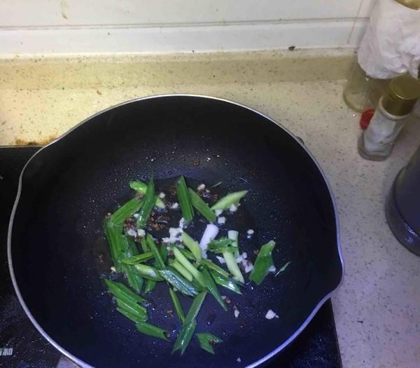 步骤 2.热锅:锅内热油,下蒜和胡椒,炒香后倒入肉片