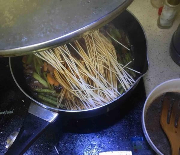 在锅里像平时正常做菜一样,翻炒一会加水,开了以后放入面条,焖熟,真的隔着锅盖都能闻到香味。其实面条最好用新鲜的湿面条,那时水不用加太多,不过没有也没关系。今天就跟小编一起来学习这道豆角焖面的做法吧。