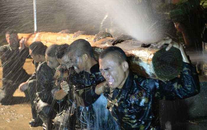 为了磨砺特种兵的心理素质,锤炼顽强的意志,校方还安排了“虐俘”训练,用藤条抽得队员满身伤痕,然后在身上涂满蜂蜜,夜晚绑在原始丛林的大树上,他们深刻地体会到了虫蚁蚀骨的痛痒感。1小时,2小时……