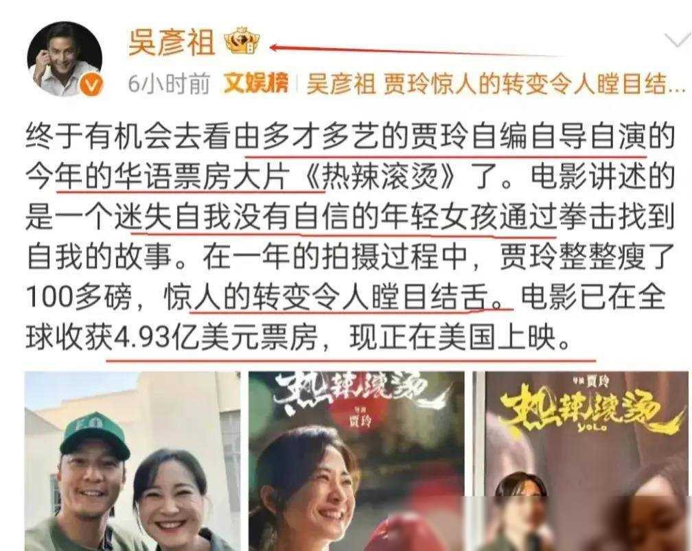 贾玲跷二郎腿霸气亮相,与吴彦祖合影似两代人,满脸褶子引热议!