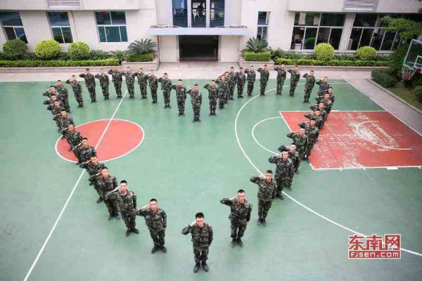 【母亲节节日图片】中队官兵摆成爱心形状,为自己的母亲献礼(东南网记者 陈楠摄)