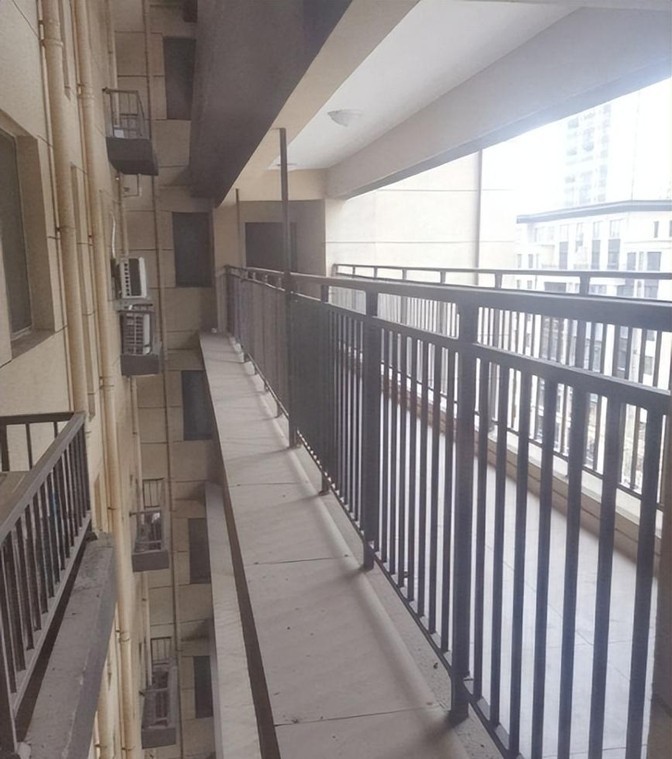 除了上述的噪音、隐私、采光问题外,连廊户型还有一些让人无语的“设计”。比如,有些连廊的栏杆设计得过于低矮,小孩和宠物很容易就能爬上去。一旦发生意外,后果不堪设想。
