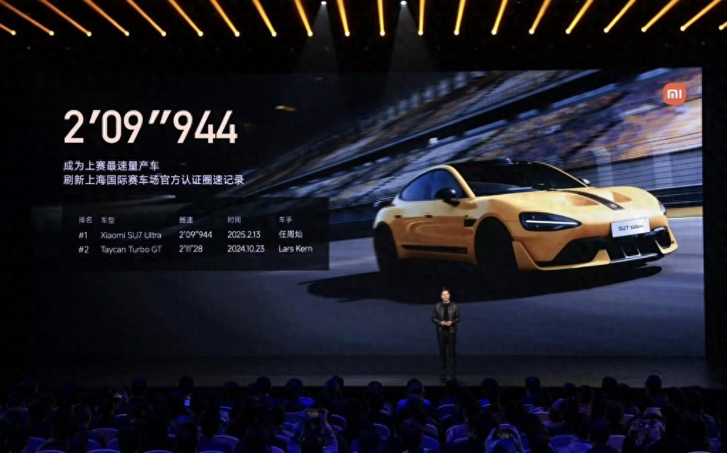 在中国级别最高的上海国际赛车场,小米SU7 Ultra以2分9秒944的成绩刷新了量产车的圈速记录,成功超越了保时捷Taycan Turbo GT的圈速,成为上赛最速量产车。