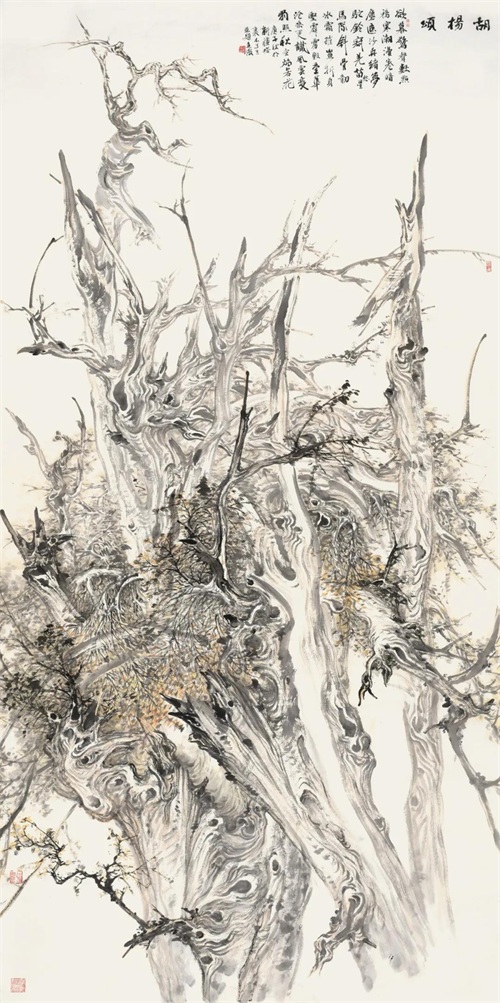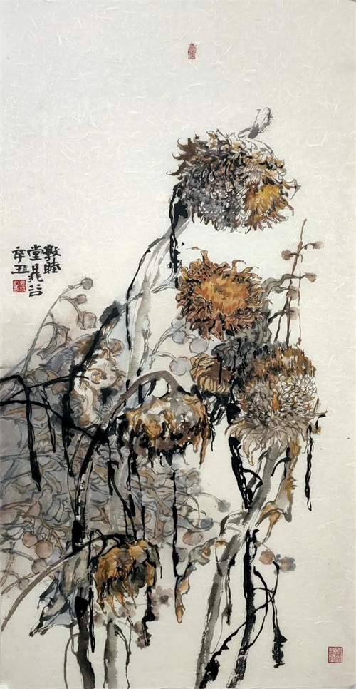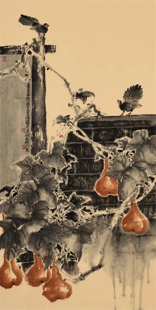 无疑“笔墨当随时代”是近百年中国画家一直乐于高举的旗帜,然而时代往往不给他们明确的指向,因此唯有探索之持久,才是创造新生命力的唯一动力。“笔墨”乃绘画之“理法”,无定法而有规律,在"笔墨"精神层面讨论"探索"似乎更接地气,如同"法无定法","无法有法",从而持之以恒追求一种精神层面的美感是中国画亘古不变的命题。纵是山水万千,人情风物,花鸟鱼虫,推及创作心路,唯有情笃方可构图精巧;唯有挚爱,才能笔墨传神。法为无法,乃为造化之迁移;色至无色,乃为生命的律动!感思自然无言,本以天地为素笺;深谙持恒之意,化为万物之五彩,绘就万般生动与率真,却从不以人美赏称奇为傲,而艺术家之登峰造极,定悟道返璞,方臻与化境!