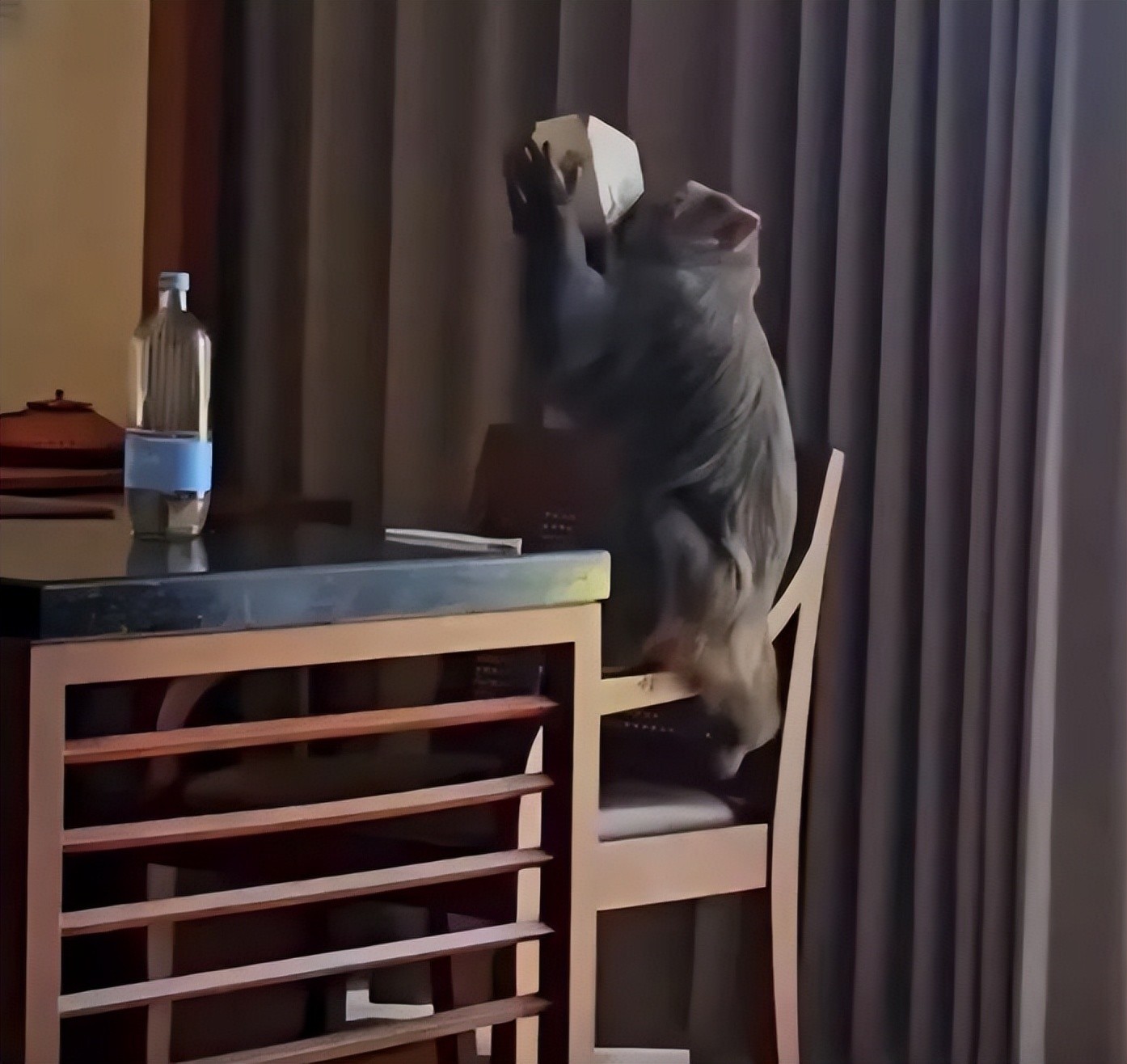 闯入房间的猴子在大口喝椰子水(网络截图)