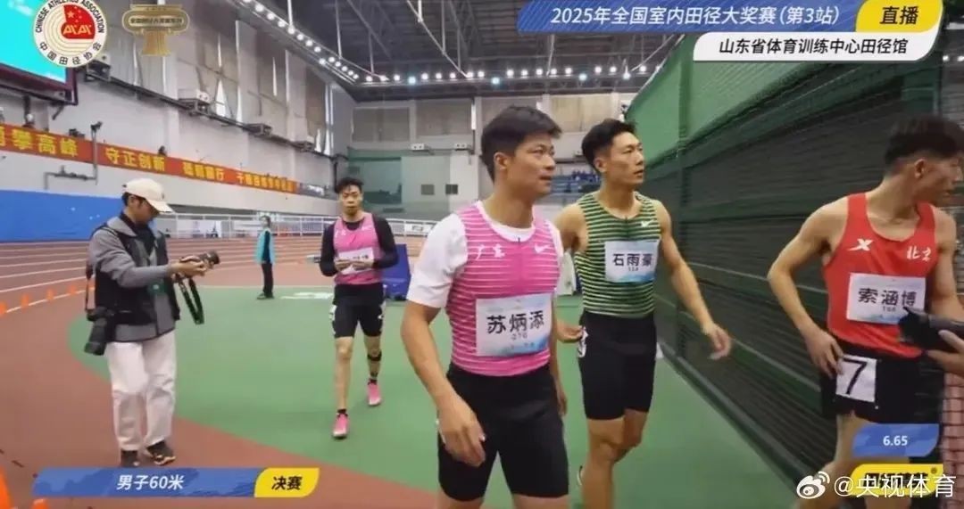 2月18日,2025年全国室内田径大奖赛第3站比赛在山东济南鸣枪,据央视体育消息,苏炳添在男子60米决赛中跑出6秒65的成绩夺冠。