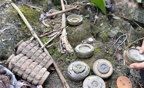有次某扫雷队在山中一个区域,炸开三十厘米的土层,一探测发现下面有几十颗地雷。
