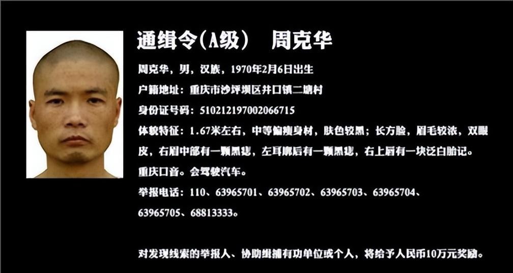 而重庆警方拿到嫌疑人的身体信息一对比,很快锁定了周克华。