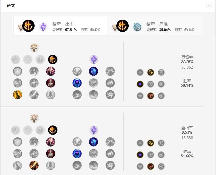 OP.GG上,最适合EZ的符文仍然是征服者,而目前,几乎所有的EZ玩家都会选用征服者的打法,由于EZ属于技能型ADC,因此叠加征服者的难度比起平A型ADC来说简单很多,如果W命中对手,那么EZ可以在一套连招后很快地把征服者叠满,这对于他后续作战中的伤害和回复能力都是一个很大的加成。而在小天赋方面,EZ的出装非常依赖减CD,而他的魔切打法也决定了他必然非常需要蓝量,因此气定神闲,法力流系带和超然是必须要携带的,其他的小天赋究竟如何选择,还要视对局情况而定。