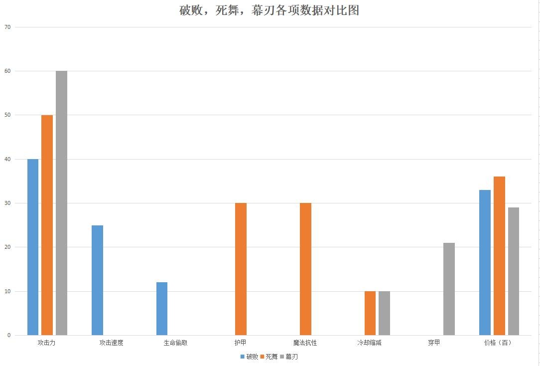 接下来,我们对三件装备的各项属性进行对比,幕刃此前已经提到过,主要侧重点在穿甲方面,同时也具备最高的伤害能力和最低的价格,适用于刺客型打法的EZ,但泛用性较差,除却对手纯脆皮阵容的情况,其他对局中很难出场。主要的对比还是落在破败与死亡之舞两件装备上。虽然破败同样提供攻击力和生命偷取的效果,但是,死亡之舞以只贵200元的条件换取了30点双抗以及10%的冷却缩减,在大多数对局中,这样的选择当然是非常划算的。当然,破败也并非没有长处,在对手坦克英雄很多,己方伤害明显不足的时候,破败提供的生命值百分比伤害是EZ必备的,这种情况下,EZ必须要选择破败,否则只会走向慢性死亡。总之,EZ的各种出装思路几乎都有自己的适用条件,只不过在目前的环境下,死亡之舞是最泛用,性价比最高的一种选择。