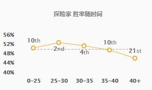 EZ同样是一个胜率曲线非常极端的英雄,在25-30分钟终结比赛时,EZ的胜率达到了第二名,而在30-35分钟也能处在第四的位置,但是,一旦超过40分钟,EZ的胜率瞬间跌落到了第21名。因此,在致胜思路方面,EZ必须要贯彻在中期终结比赛的思路,如果队友因为大优势就开始浪,EZ玩家必须要及时叫停队友,否则,很有可能出现EZ最尴尬的情况:队友把比赛拖到了大后期,而前中期大优势的EZ在后期完全没有作用,从而导致输掉比赛。