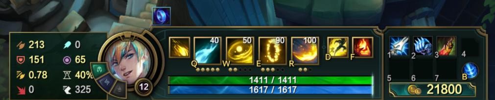 魔宗之后出到冰拳,再出死亡之舞,这样的打法让EZ的抗性飙升,配合上冰拳的风筝能力,减CD,以及征服者,死亡之舞的吸血,EZ几乎会成为中期最难死的存在。不但可以风筝对手,还能够规避伤害,保持血量,在魔切成型后,EZ的伤害也是依赖自身的蓝量打出的,凭借着强势期中极高的坦度和风筝能力,EZ能够获得非常可怕的容错率,从而在团战中予取予求,带领队伍取胜。