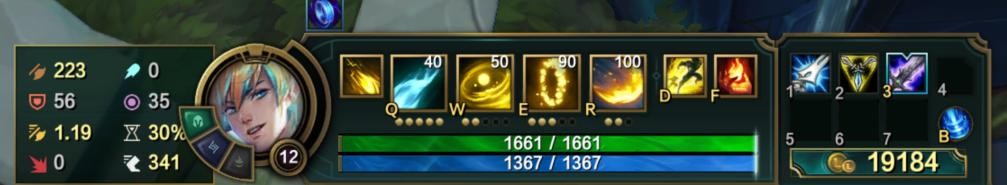 从对比图中,我们可以看到这两件装备最显著的差距,12级时,EZ出到冰拳+死亡之舞时能够拥有151点护甲,而如果选择三相+破败,就仅有56点护甲了,这在坦度上形成了非常鲜明的对比,也显著影响了EZ的容错率。在单排中,容错率是非常重要的,他决定了玩家能否自如地操作,是否有足够的空间去carry队伍,而在魔切叠满,伤害本身就比较可观的情况下,EZ选择死亡之舞显然是更泛用的选择。