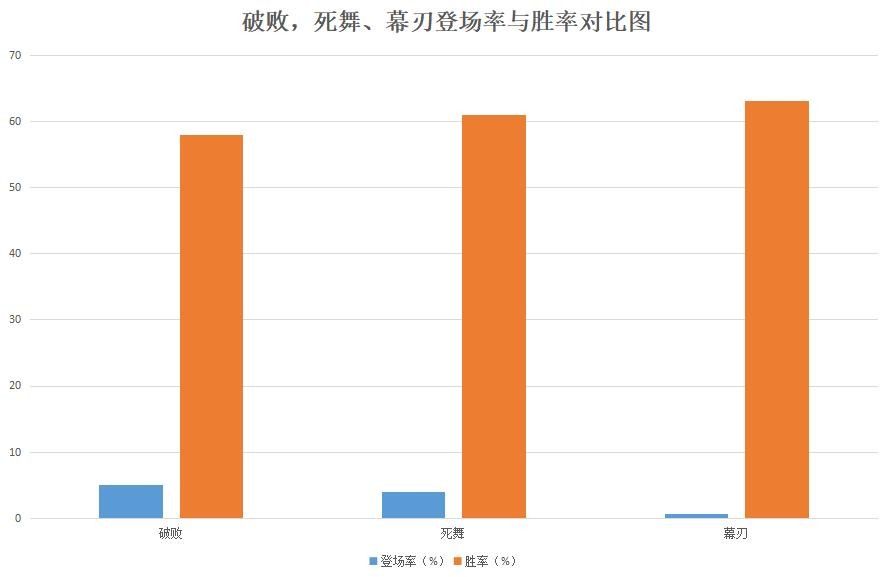解读了三相和冰拳的适用场景之后,我们再来看看第三件装备究竟应该如何选择。首先是三件装备的登场率和胜率,从图中我们可以看出,幕刃是比较冷门的一种出装,这种打法注重的是穿甲和爆发伤害,主要应用场景是面对对手脆皮较多,而EZ的发育非常好的时候,当然,幕刃的出装搭配三相效果更好,能够打出非常可观的爆发,但在正常对局中,这种打法适用性较差。而破败作为主流的打法,其出场率比新套路死亡之舞略高,但是胜率上却有着比较明显的差距,足以看出在目前的版本中,死亡之舞的作用要大于破败,也更加适合EZ。