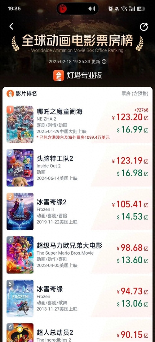 登顶全球动画电影票房榜!