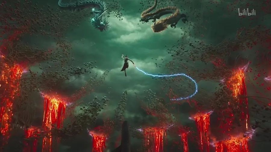更不消说,《哪吒2》中的一幕幕,就是中国动画视觉技术走过的一步步:浩瀚又细腻的海水画面视觉呈现,承自《深海》团队自主研发七年的粒子水墨技术的开源共享;申正道和灵珠哪吒打斗场次深山密林的瀑布特效,由《熊出没》华强方特团队主要负责;围困陈塘关的震撼视效,完成者是《凡人修仙传》作者原力动画;2亿人洪流对撞的特效,出自《姜子牙》联合导演王昕的公司泥丸星……