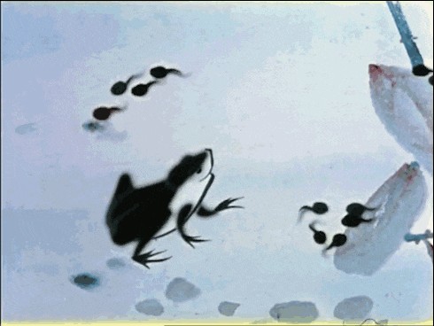 1961年,上美影研制出中国独创的水墨动画,并以齐白石《蛙声十里出山泉》为造型蓝本,创作了《小蝌蚪找妈妈》。要知道,中国水墨画搬上大银幕,这可是从没有人尝试甚至是想象过的场景。因为所用画稿都由毛笔完成,与历来动画的制作工艺天差地别。可“不模仿他人,不重复自己”的上美影做成了。