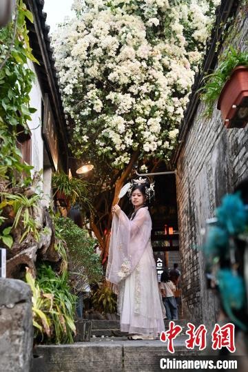 3月22日,广东深圳甘坑古镇吸引游客游玩拍照。甘坑古镇是“深圳十大客家古村落”之一,距今已有300多年的历史。中新社记者 陈楚红 摄
