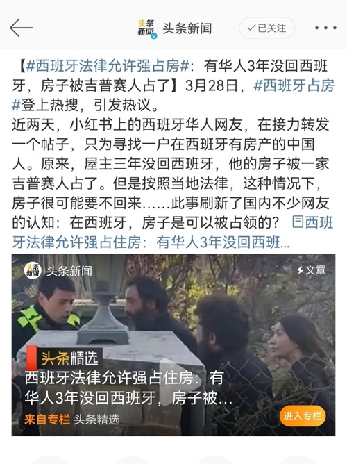 网传,一华人因三年未返回西班牙,其房产被吉普赛人占据。根据当地法律,房子很可能要不回来。