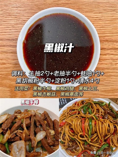 黑椒汁,在西餐中,如牛排、猪排等菜品常搭配黑椒汁。黑椒汁的辛辣和浓郁香气,为肉类增添了独特的风味。当一块煎至恰到好处的牛排淋上香浓的黑椒汁,那诱人的画面和扑鼻的香气。