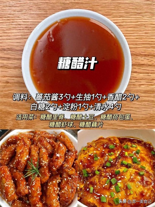 糖醋汁,这一经典的调味汁,在传统菜肴中,如糖醋排骨、糖醋里脊等,糖醋汁的运用堪称点睛之笔。其酸甜比例的精妙搭配,使得菜肴口感层次丰富,让人食欲大增。