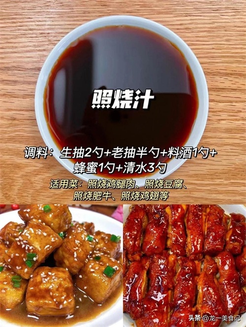 照烧汁,源自日本的独特调味汁。照烧汁常用于照烧鸡肉、照烧鳗鱼等菜品,赋予了食材诱人的色泽和醇厚的味道。
