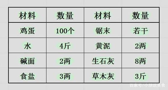 主要原料:新鲜鸡蛋、生石灰、盐、锯末、黄泥等。 以下是别人制作成功的配方,可以参考一下: