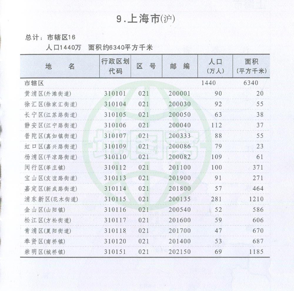上海市最新行政区划图+行政统计表