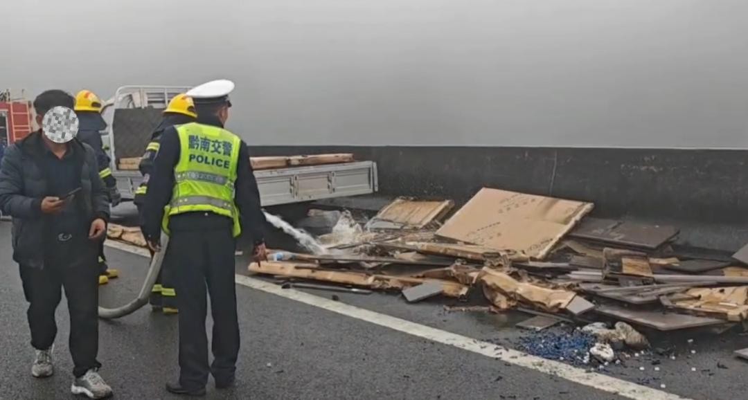有惊无险!小货车大桥上突自燃,黔南高速交警有效处置!