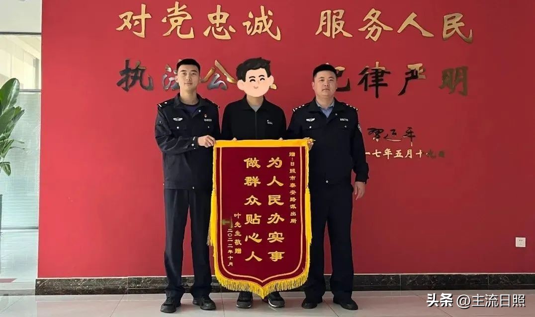 10月28日一早,叶先生左手拿着一面锦旗,右手提着一袋水果,来到泰安路派出所。