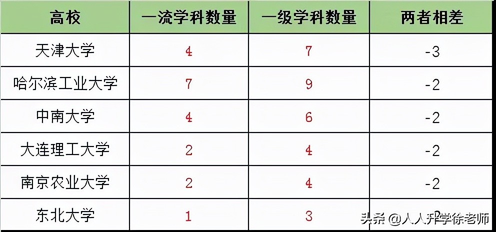 还有一些学校,一流学科数量高于一级学科5个以上,这些高校无疑有着更好的发展势头: