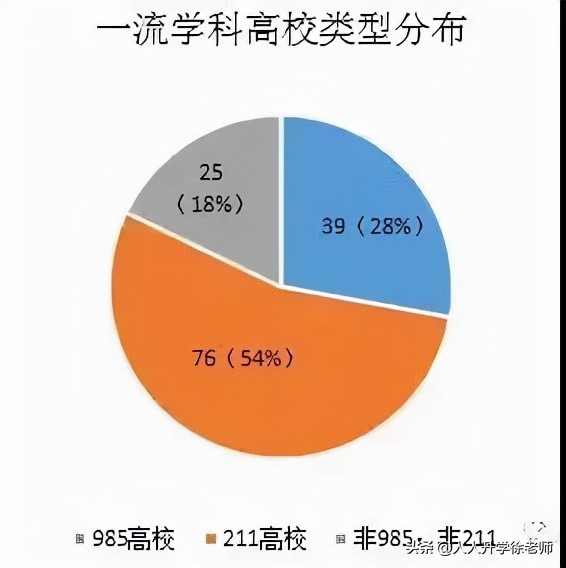 拥有一流学科的高校中,仅25所(18%)高校既非985也非211,39所(28%)高校是985工程建设高校。