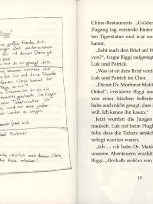 故事中绑匪是英国人,所以对德语的书写习惯或中文的谐音并不敏感,才小虎队让求救信发到了小虎队手中。而译者在处理这段文字时,不仅要准确地翻译文字,还要重新构思一个适合情景的谜题,真是难为他们如此费心,才为我们带来了念念不忘的好卡通作品。
