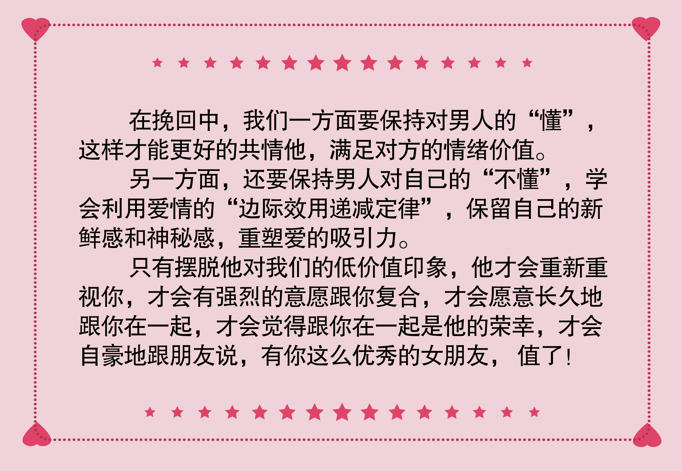 想要逆转这种低位、被动的局面,成功挽回男人心,势必要用最高效的方法重塑自己的高价值,修复爱的吸引力!如何操作?