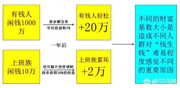 一个拥有1000万财富的人,把钱扔在余额宝里,每天什么都不做,一年下来就可以获得20多万元的收入,这足以超过90%上班族的年薪,对于这类有钱人来讲,“钱生钱”确实是简单。