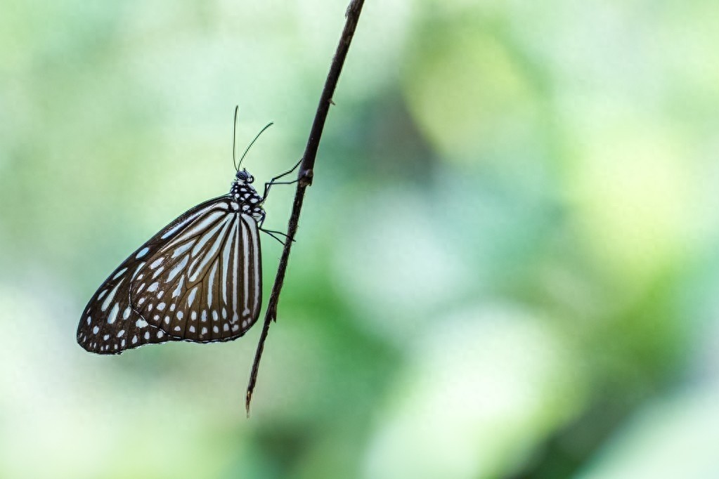 5、它会表演一种个性的体操,身体腾起在空中,只有一点固着在旧皮上,翻转身体,使头向下,花纹满布的翼,向外伸直,“竭力”张开。