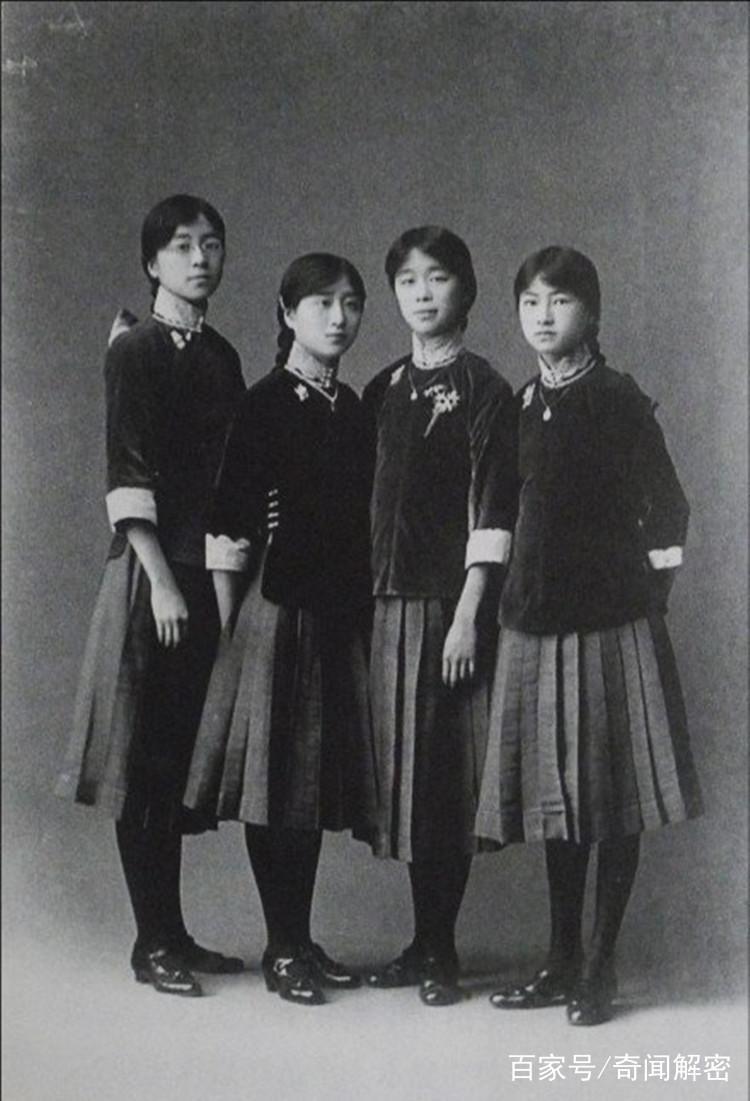 林徽因曾随父亲赴欧洲游历伦敦、巴黎、日内瓦、罗马、法兰克福、柏林、布鲁塞尔等地,同时进入伦敦圣玛利女校学习,受到环境的熏陶,她出落得越发美丽动人。图右一为12岁的林徽因,依稀可见其清丽的容颜。