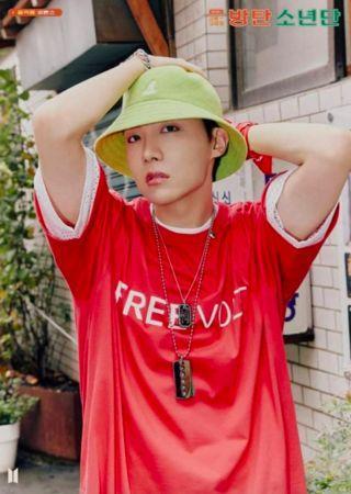J-hope过去也曾透过服装传递善念。(图/翻摄自防弹官网)