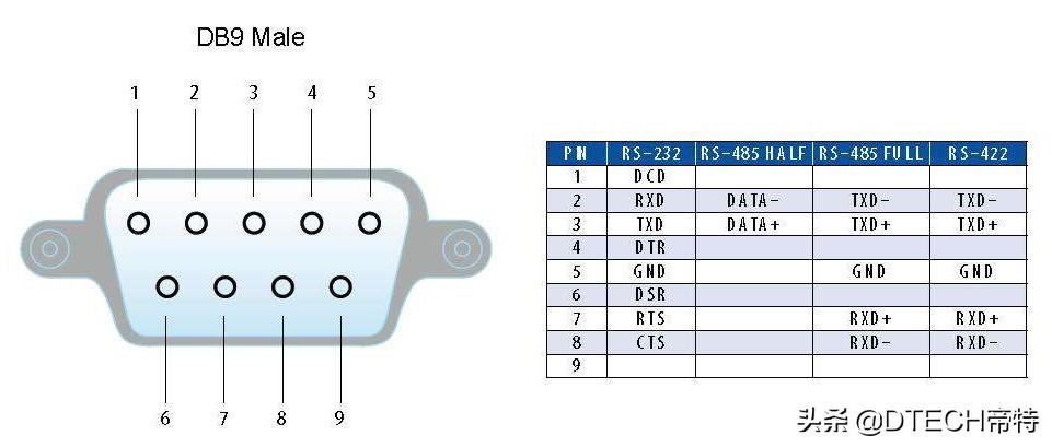 串口是计算机主要的外部接口之一,通过九针串口连接的设备有很多,像串口鼠标、MODEM、手写板等等,九针串口的示意图如上,其各脚的定义如下: