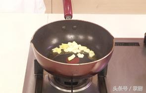 3. 锅留底油烧热,撒上姜片、葱白,倒入蒜片,爆香。