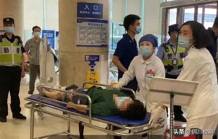 急诊大厅门口,一位身着绿色上衣的女士躺着,面带伤痛表情。她是从火灾现场送来的伤者,医生正在一旁详细询问情况。绿衣女士说,事发时候她在二楼,看到隔壁起火,就从二楼跳下来,摔伤了。